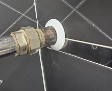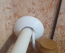 Способ монтажа: Обвод трубы одевается в обхват трубы, защелкивается и прижимается к полу. Если у вас трубы близко к стене, вы можете повернуть розетту узким краем к стене, и она у вас встанет на место.
