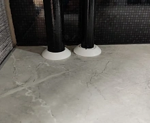 Диаметр 22 мм. Центр отверстия под трубу смещен вбок. Предназначен для оформления стыка вертикальных труб и пола. Закрытия технологических зазоров и нервных краев покрытия.