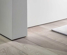 Особенности монтажа: Уложите ламинат так, чтобы его край заходил под будущий профиль, но не упирался в стену. Нанесите «жидкие гвозди» зигзагом на тыльную сторону профиля. Приклейте профиль к ровной стене прямо поверх ламината. Заштукатурьте верхнюю кромку профиля, чтобы она слилась со стеной. Зашпаклюйте и покрасьте стену как обычно.